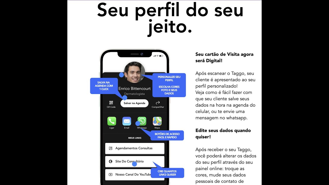 ✅ Acesso fácil e rápido às suas informações de contato através de um link interativo.