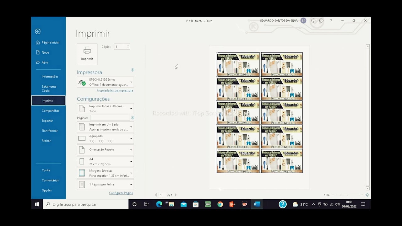 CRIANDO E IMPRIMINDO CARTÃO DE VISITA FRENTE/VERSO NO WORD 👨🏽💻🌐🌀