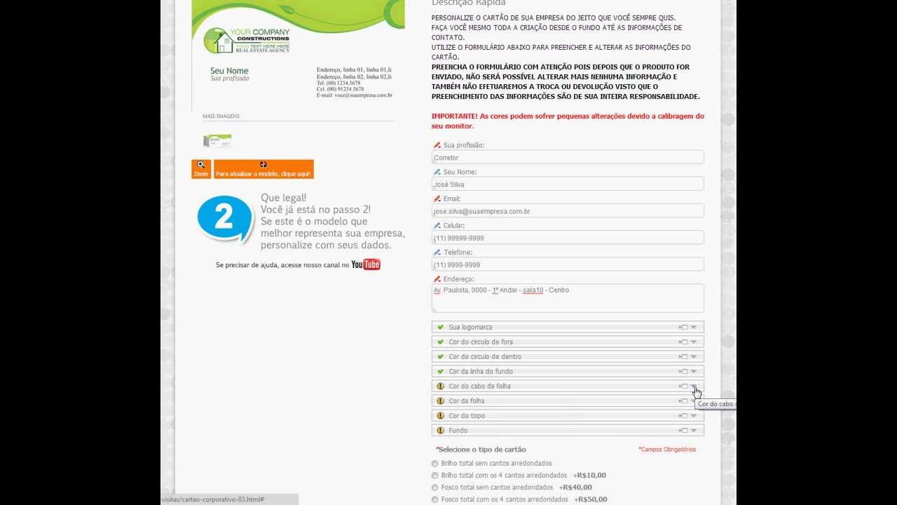 PERSONALIZANDO SEU CARTÃO DE VISITA